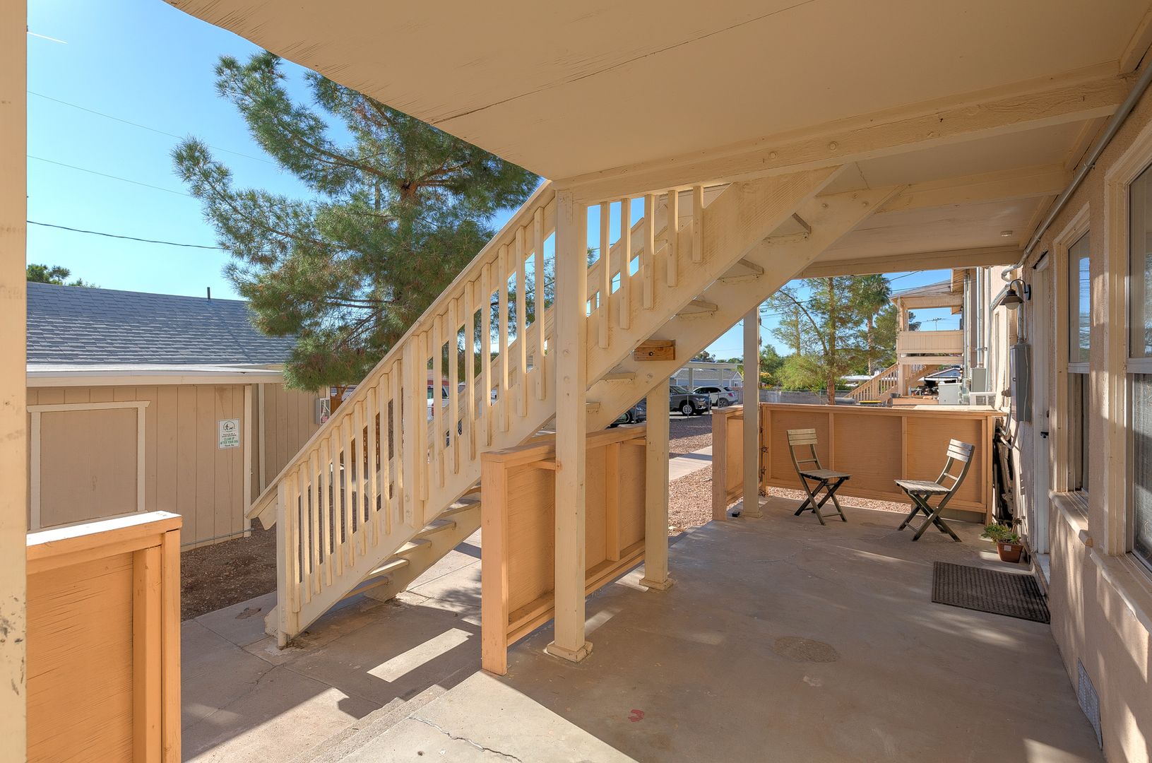 Parking in carport in rear, on street, or at second private parking lot in front.