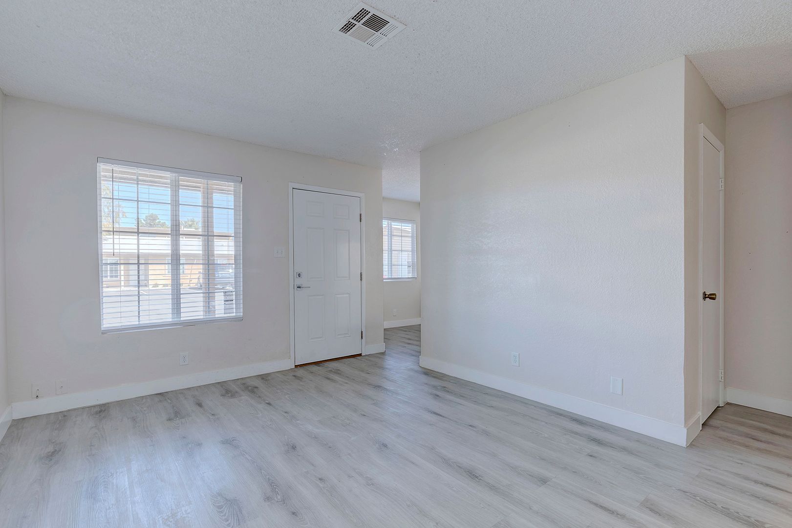 Large Two Bedroom apartment, approximately 750 sq ft, with large open living room.