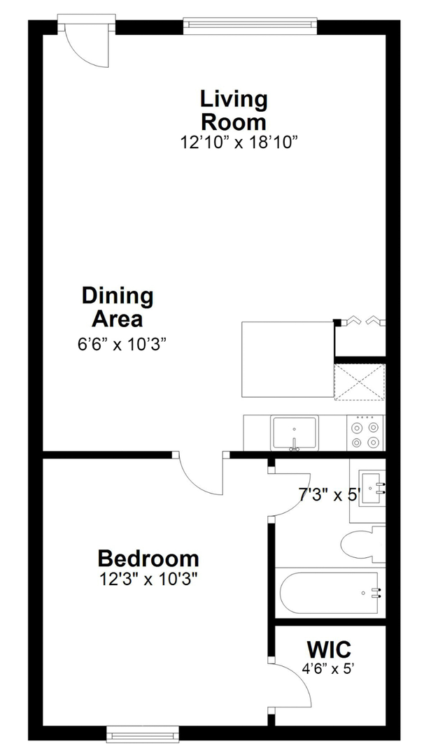 Spacious loft-like one bedroom one bathroom apartment. New wood-like luxury vinyl plank flooring throughout home. This is a 1st floor corner unit.