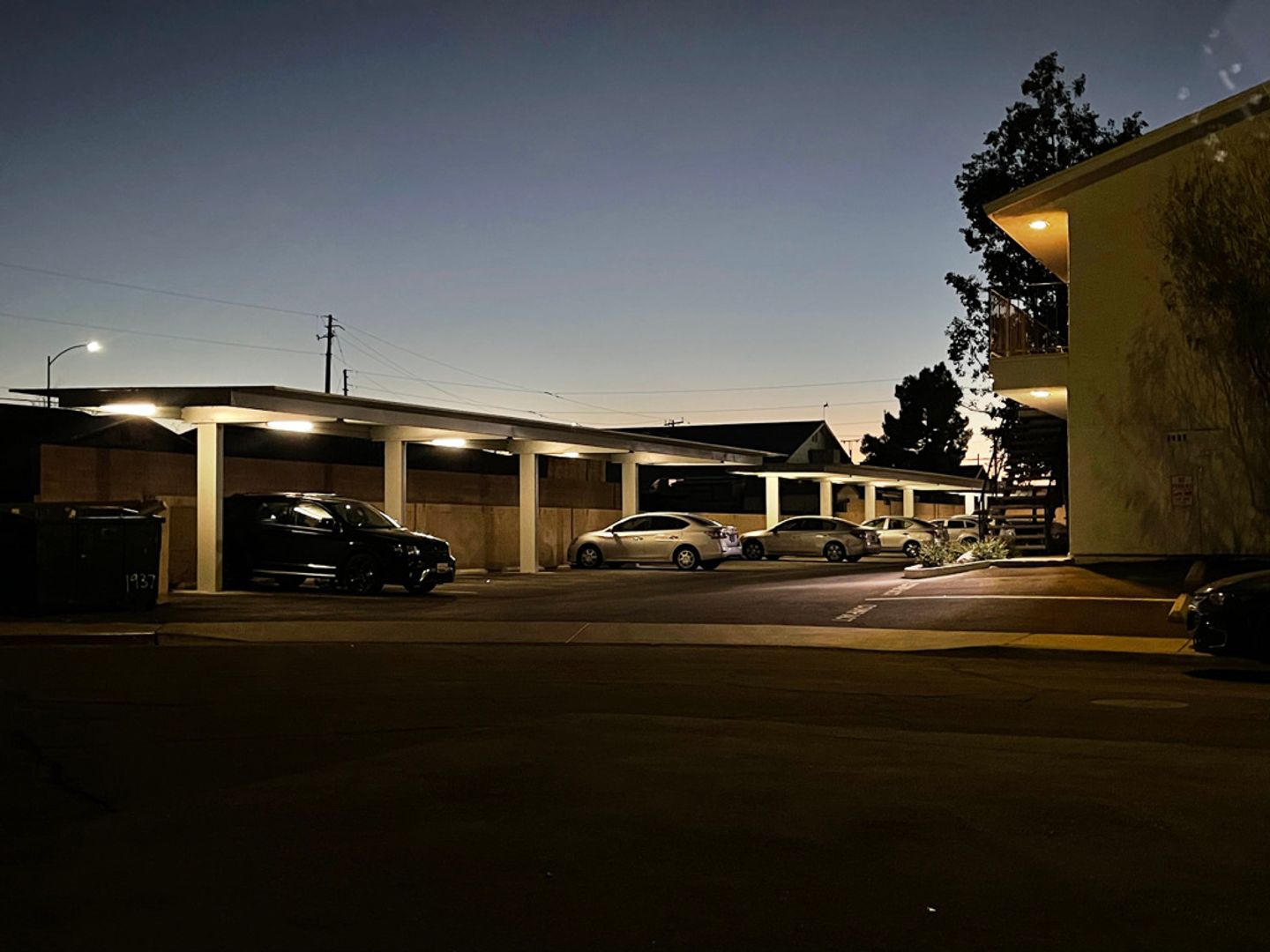 Entire complex has been renovated. New parking lot with carports, exterior lighting, landscaping, and community areas including dog run and seating area.