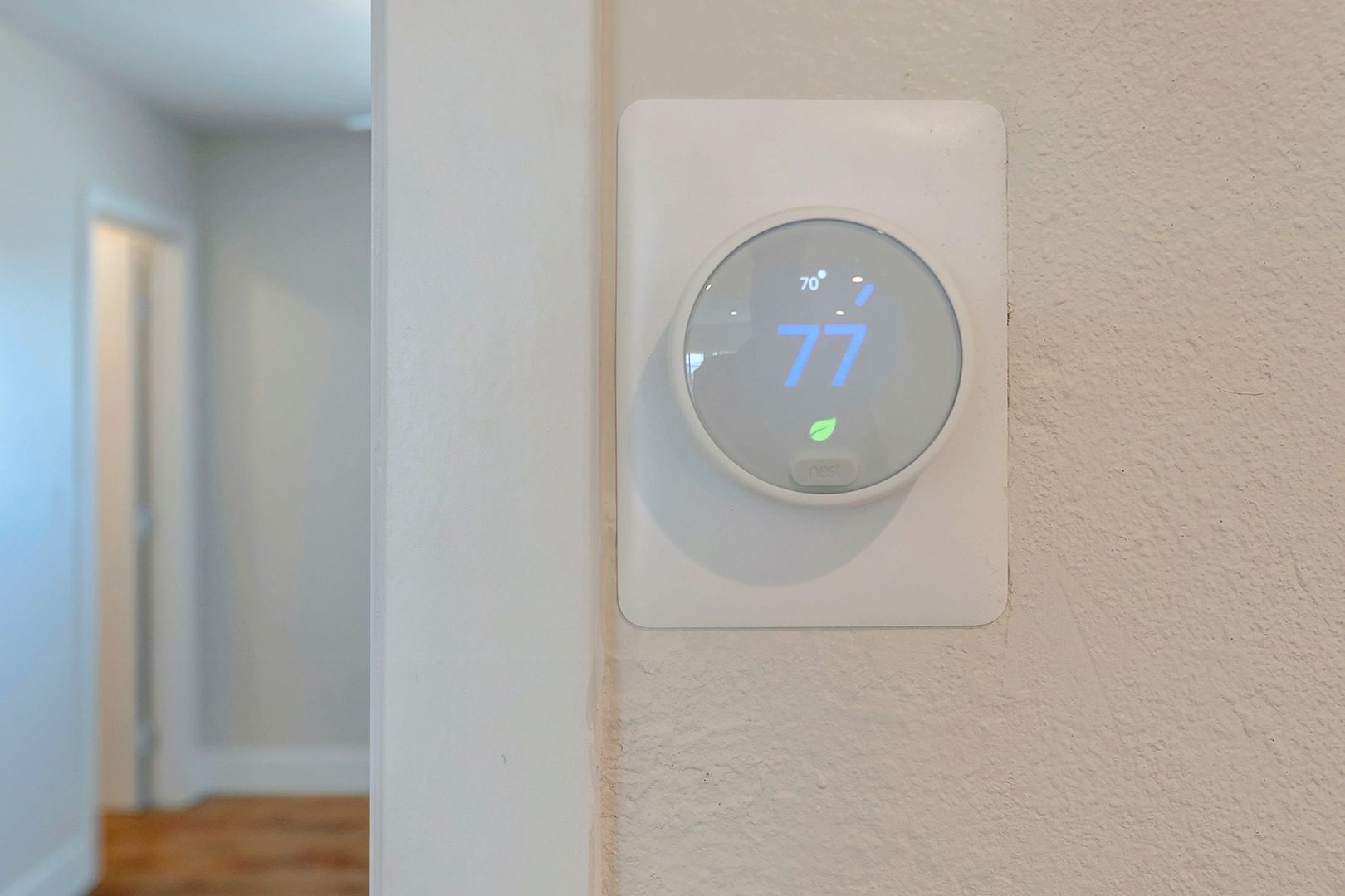 Nest thermostat, recessed led lighting throughout unit, new Hvac unit, and insulated windows and doors.