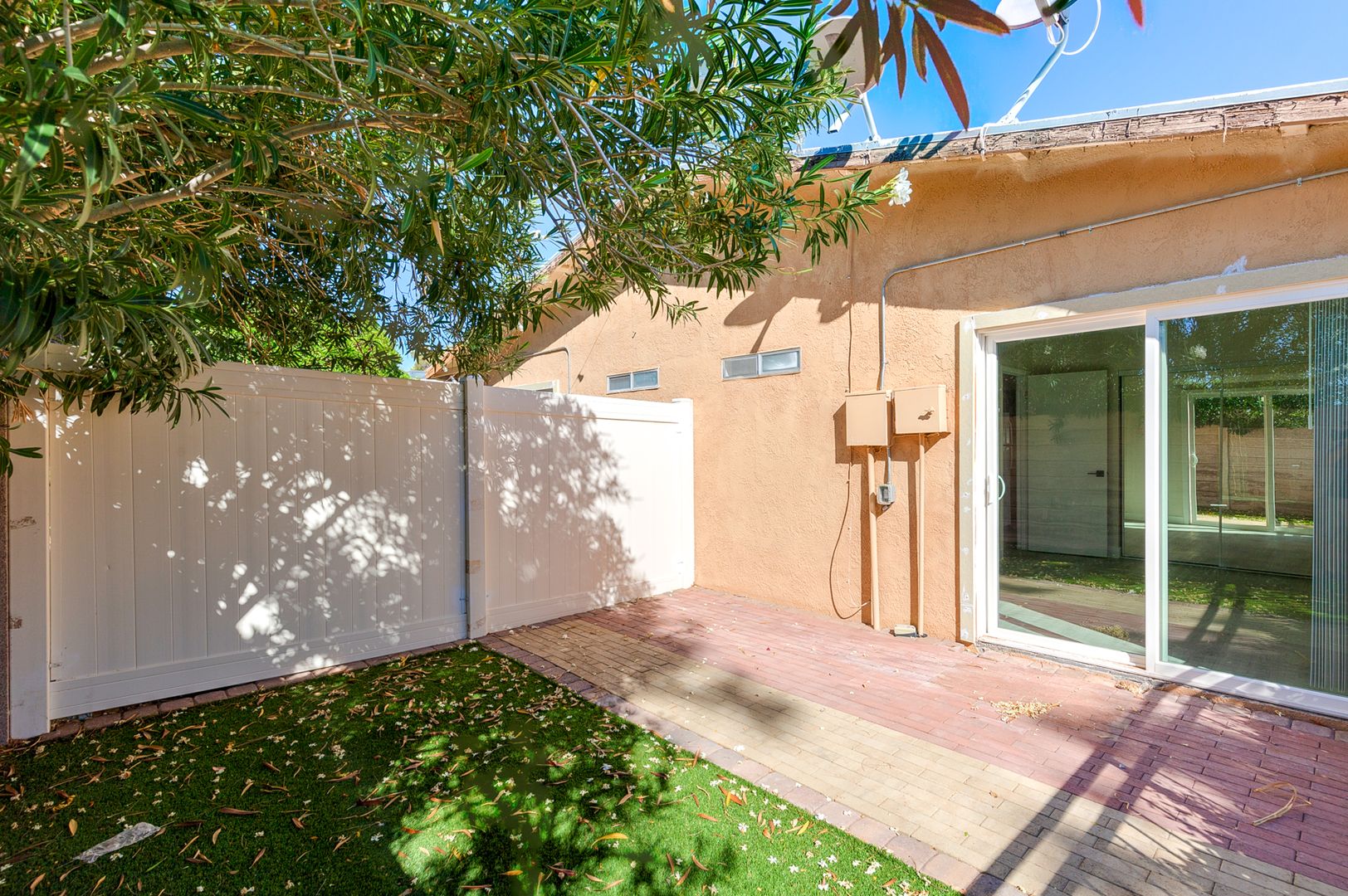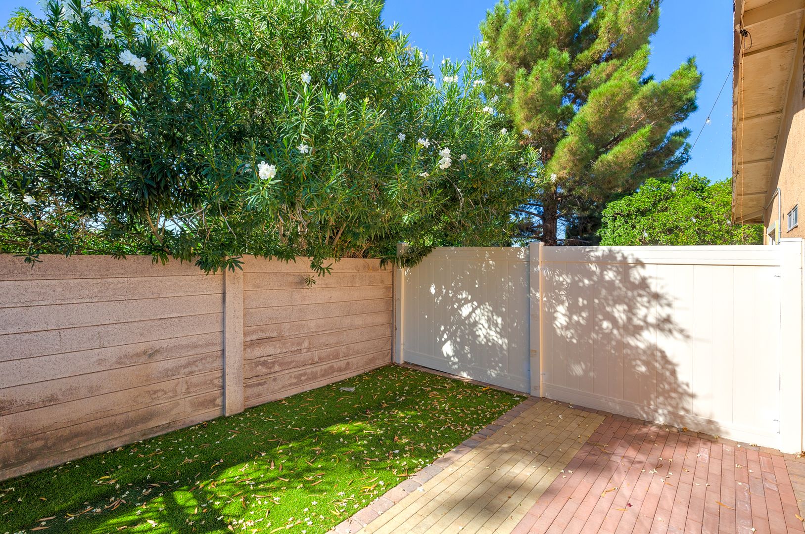 Backyard Photos - The area with the Japanese Blueberry tree is communal, the private yard is shown behind the white iron fence.