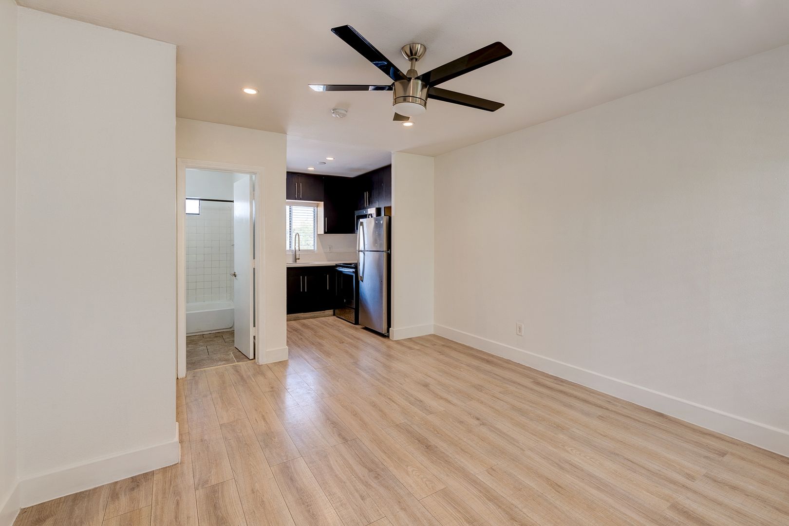 Studio apartment. with separate kitchen, tile floors.